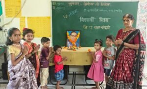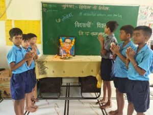 सर्व विद्यार्थ्यांनी पुष्प अर्पण करून डॉक्टर बाबासाहेब आंबेडकर यांना अभिवादन केले.