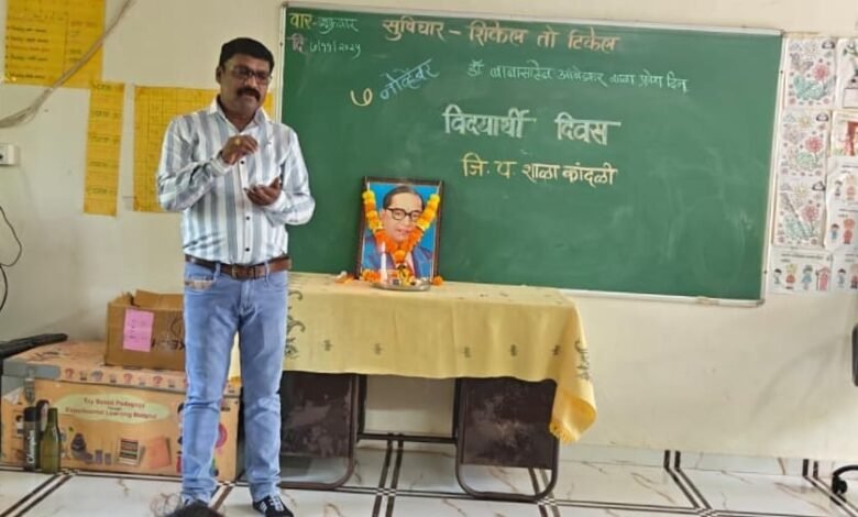 आज दिनांक 7 नोव्हेंबर रोजी जिल्हा परिषद शाळा कांदळी तालुका भिवंडी येथे ७ नोव्हेंबर डॉक्टर बाबासाहेब आंबेडकर यांचा शाळा प्रवेश दिन विद्यार्थी दिवस म्हणून संपन्न झाला.